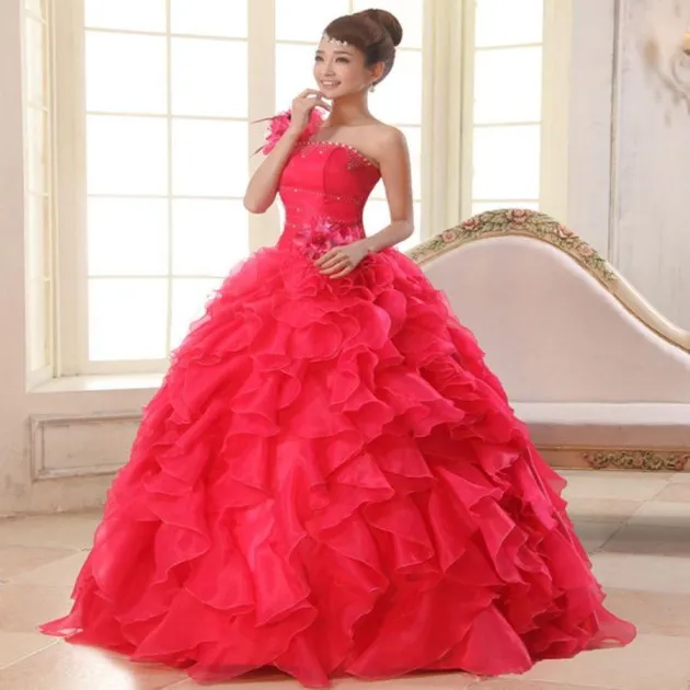 One Shoulder Annual Party Evening Dress Long Stage Costume Puff Skirt